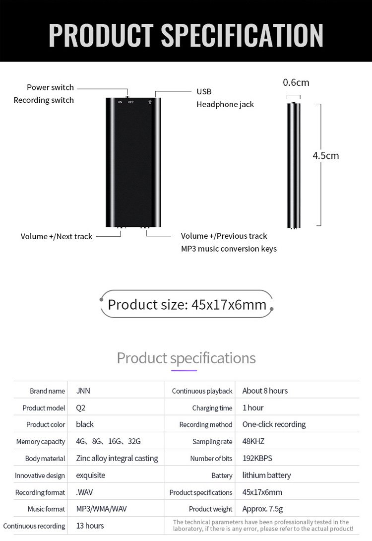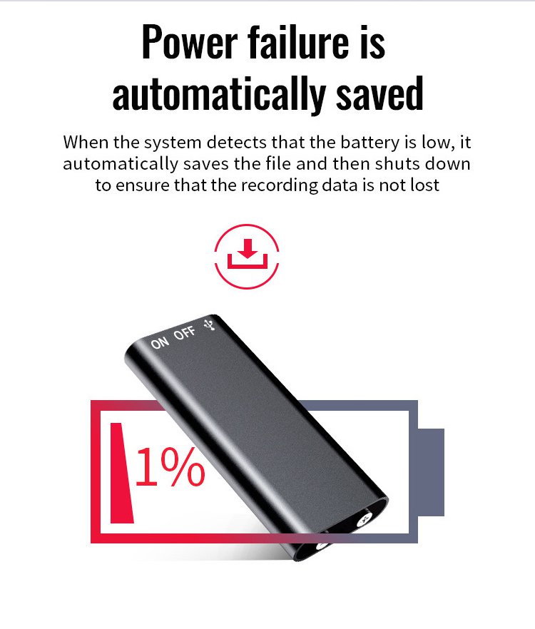 [300 hours of battery life] One-button hidden voice recorder